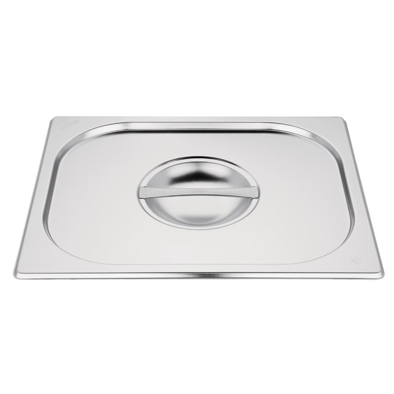 Couvercle GN 1/2 inox, poignée centrale, conserve la chaleur, compatible four. |