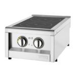 Équipée de deux zones indépendantes avec 11 niveaux de puissance et une fonction Boost jusqu’à 3 kW, elle offre un contrôle précis de la cuisson. Sa surface en verre céramique trempé est robuste et facile à nettoyer, tandis que la détection automatique de casserole coupe l’alimentation lorsque le récipient est retiré, renforçant la sécurité. Sans flamme nue ni élément exposé, elle limite les risques de brûlures en environnement événementiel.
