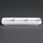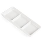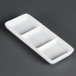 Ces plats 3 compartiments sont parfaits en location pour un buffet, un cocktail ou un service à table : leurs trois sections égales permettent de présenter proprement tapas, amuse-bouches, dégustations sucrées/salées ou encore sauces et condiments, sans mélange. Idéal pour apporter une présentation nette et professionnelle sur vos événements, tout en facilitant le service et le dressage.