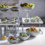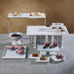 Sa finition blanche apporte une présentation élégante et épurée sur buffet. Fabriqué en mélamine résistante, il est léger, empilable et compatible lave-vaisselle, ce qui facilite la logistique et le nettoyage en fin de prestation. Sa surface lisse assure une mise en valeur soignée des préparations.