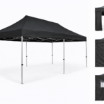 Tonnelle pliante 3×6 m noir, toit étanche, solide, montage rapide. |